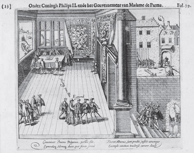 Het was echter te laat, want Alva, de ijzeren hertog, betrad met zijn legerbenden het grondgebied der Nederlanden, en nu was er voor weifelaars geen plaats meer. Zonder dat iemand erop verdacht was, liet Alva op 9 september 1567 de graven van Egmont en Hoorne te Brussel gevangen nemen.