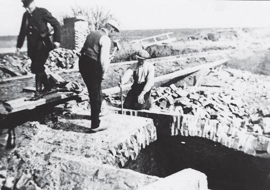 Bij de sluis, waar thans het Stoomgemaal van Geestmer Ambacht staat en welke is gebouwd in 1894 werd gewoonlijk even halt gehouden. Na eenige conversatie en gerekend naar de afstand vertrok een ieder om op tijd zich bij verschillende bouwplaatsen aan te melden. ’s Avonds na 6 uur zag men ze weer in groepjes huiswaards keeren.