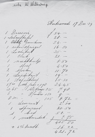 1939. Rekening manufacturier Wouter Wiltenburg voor inboedel Wijnand en Nel.