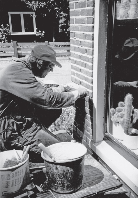 1935. Wijnand vernieuwd het voegwerk van de 'Witte Pijp'.