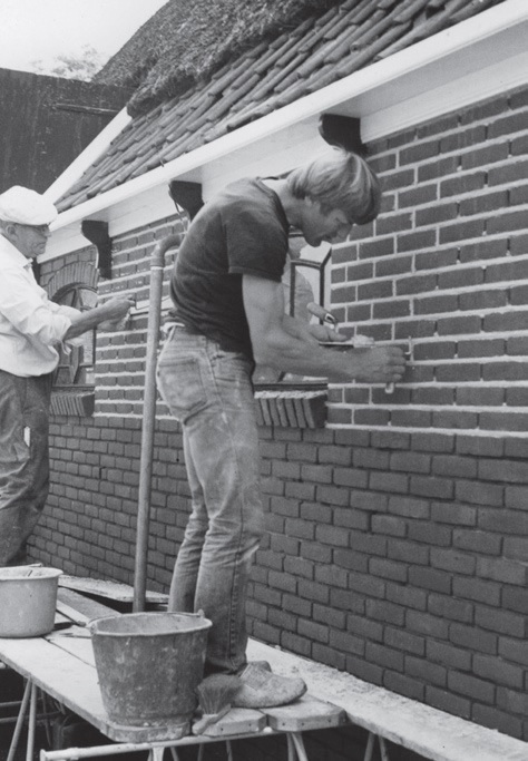 1970. Wijnand en Jan werken aan de stolp Dorpsstraat 7 in Zwaag.