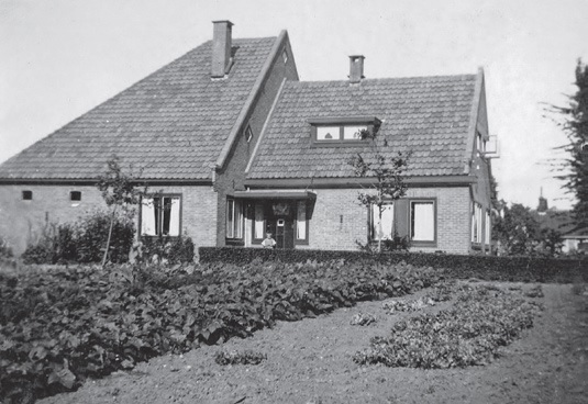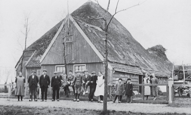 De boerderij in 1928. Rechts de kar met stoelen voor het 25-jarig huwelijksfeest.