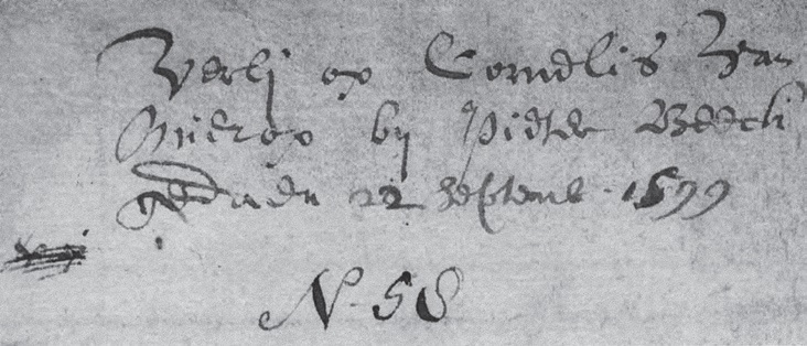 Deel van de verleibrief van de ambachtsheerlijkheid Cromstrijen met de naam van Cornelis van Mierop.