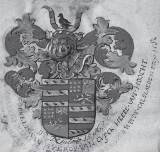 Dit was dus wat Cornelis van Mierop kocht. In het verzamelboek op de lenen van het Kwartier Friesland kunnen we lezen dat Cornelis op 28 februari 1600 beleend werd met de heerlijkheid van Hoogwouder- en Aartswouder ban ten overstaan van de vorige eigenaar, Lamoraal van Egmont jr. Behalve ontvanger-generaal, was Cornelis ook hoogheemraad van Delftland van 1586 tot zijn overlijden in 1608. In zijn tijd was dat een belangrijke functie, waarvoor hij een apart wapen liet ontwerpen.