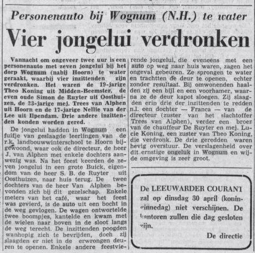 Een paar jaar na het verlaten van de landbouwschool besloten Willem Koopman uit de Wogmeer, Cor Laan uit Westwoud en Nic om een vereniging van oud-leerlingen op te richten. Men ging excursies organiseren en feesten bij Entius in Nibbixwoud en bij Stam in Wognum. Nic nam namens deze vereniging zitting in het cursuscentrum in Hoorn. De vereniging werd echter begin jaren vijftig overschaduwd door een ernstig ongeluk. Na een reünie in café Stam reed een aantal jongelui in de auto terug naar Hoorn, maar buiten Wognum kregen ze een ernstig ongeluk. Hun auto belandde op zijn kop in de sloot waarbij een aantal inzittenden om het leven kwam. Een drama was dat.