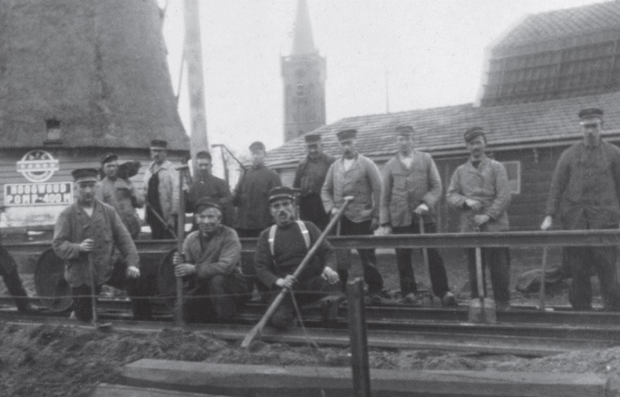 Werken aan het spoor bij de Lastdrager in Hoogwoud in 1920.
