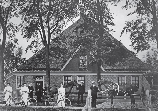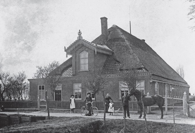 Op de oude foto’s poseren de bewoners trots voor hun woon- en bedrijfspand. Alle gezinsleden in hun mooiste kleren en met hun belangrijkste bezit: de mannen met paarden, de vrouwen met fietsen, meisjes met poppenwagens, een jongen met een hond. De boerderijen waren gebouwd voor de melkveehouderij. Op de oude foto’s hadden ze nog die functie.