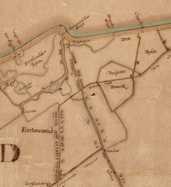 Detail van de grote manuscriptkaart van Johannes Dou, 1657. Westfries Archief, Hoorn.