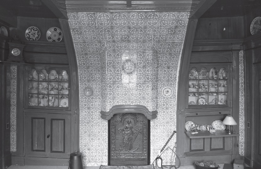 Om aan deze gegevens te komen heb ik contact opgenomen met de heer Marten Brascamp van het haardplatenmuseum in Klarenbeek in Gelderland. Tevens was mij ter ore gekomen dat Willem Deutekom uit Aartswoud ook zo’n haardplaat in de schouw had. Hij had hem gevonden op het stukje land naast de familie Helder op de Gouwe, dat toen in het bezit was van de familie Deutekom. Bij het ploegen van het land kwam de haardplaat naar boven. Een stukje van de onderkant was weg, maar de voorstelling op de haardplaat was prachtig. Hij is opgeknapt en staat nu prachtig bij hen in de kamer. Op dat stukje land waar de haardplaat gevonden is, blijkt vroeger bewoning te zijn geweest. Dit ben ik te weten gekomen door een landkaart van het Westfries Archief. Tussen 1651 en 1654 heeft Johannes Dou hiervoor (samen met Cornelis Lenartsz. Koutter) opmetingen gedaan. Op die kaart staan woningen getekend die in die tijd onder andere aan de Gouwe stonden. Op het stukje land waar de haardplaat opgeploegd is, is tevens divers aardewerk gevonden uit de periode 1600-1650. Daarmee is de plaat te dateren in diezelfde periode. De oudst bekende haardplaten stammen uit de tweede helft van de 15de eeuw. Haardplaten zijn van oorsprong luxeartikelen, uitsluitend bestemd voor koninklijke en adellijke huizen. Vandaar dat de vroege haardplaten de wapens en schilden van adel en koningen tonen. Later kregen de platen meer decoratieve ontwerpen, zoals klassieke voorstellingen en natuurtaferelen. Een haard biedt warmte, geborgenheid en stijl, zelfs nu de haard vaak niet meer de belangrijkste bron van warmte is voor de mens. Een haardplaat werkt als een radiator en daardoor kan de efficiëntie van een open haard met maar liefst 50% toenemen. Antieke haardplaten hebben in onze tijd een andere functie, bijvoorbeeld als spatscherm boven een fornuis of gewoon als elegante decoratie aan de muur.