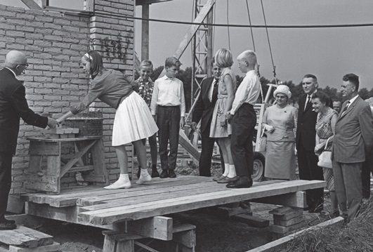 De volgende stap was dat de voorbereidingscommissie omgevormd kon worden tot bouwcommissie, met Piet Schilder weer als voorzitter, hierin heel goed ondersteund door gepensioneerd gemeentearchitect Willem Delissen, die zich als bouwkundig opzichter voortreffelijk waarmaakte en mede daardoor de bouw voorspoedig deed verlopen. Aannemer Ton Kuijpers, die op de aanbesteding inschreef voor de aanneemsom van f 282.100, ging het werk uitvoeren. Op 4 september1964 metselden zes kinderen van de lagere scholen uit de beide gemeenten een gedenksteen en de firma Kuijpers bouwde nadien gestadig verder aan het fraaie zwembad.