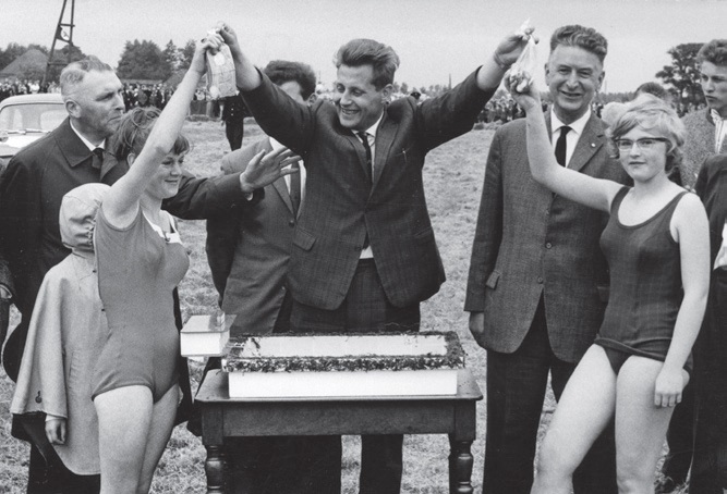 Ook nog een zeer fraaie springdemonstratie van vier dames van een Haagse club. Ten slotte mochten vier leerlingen van basisscholen uit de gemeenten het bad als eerste gemeentenaren officieel in gebruik nemen, weldra gevolgd door zeer veel jeugdigen.