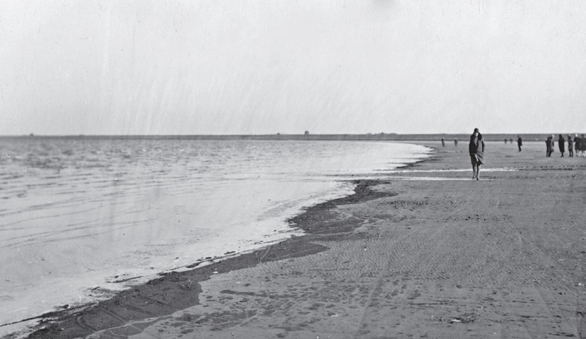 1930. Trijntje Bos (voorgrond) op het strand van Aartswoud.