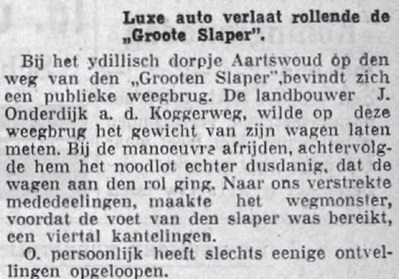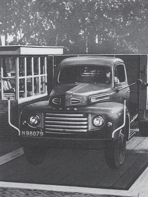 Bij de weegbruggen ging er wel eens wat mis. In 1937 rolde een wagen van de dijk bij het verlaten van de weegbrug.