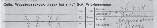 Weegkaartje 1958.