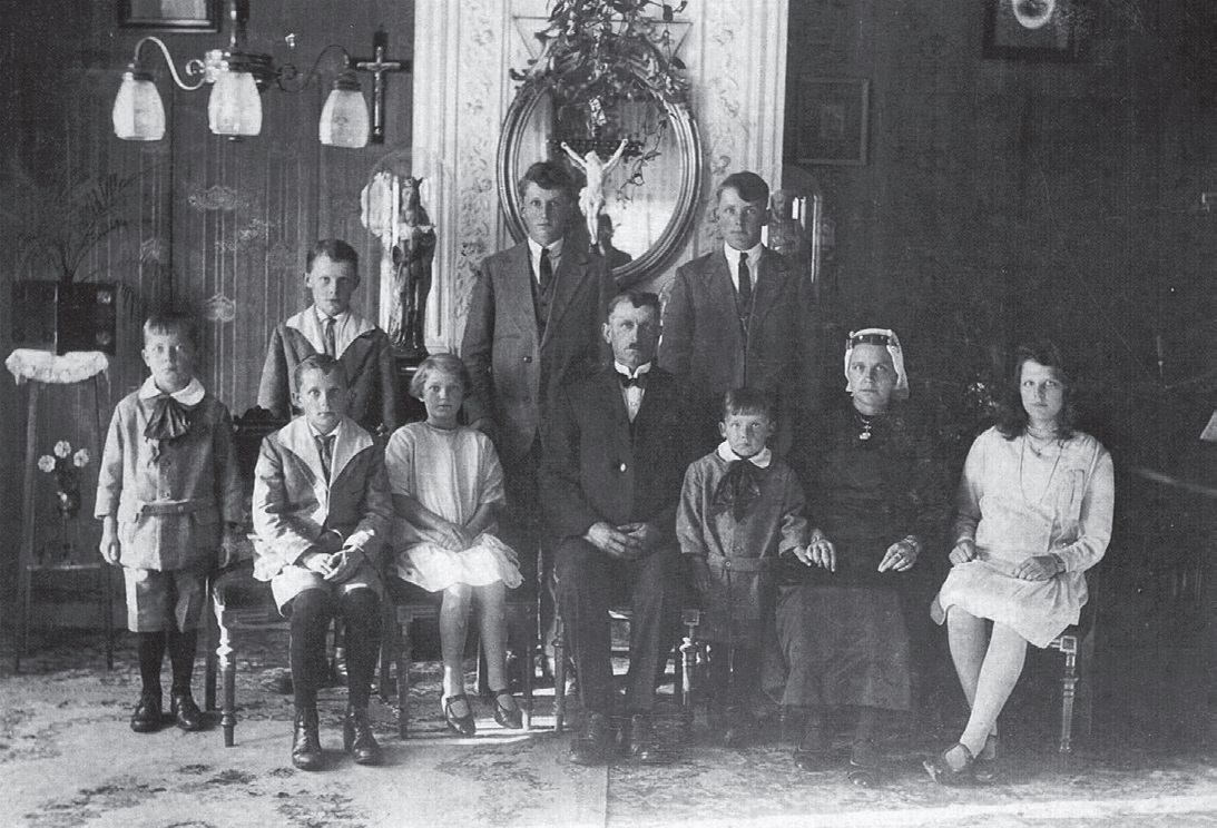 Het gezin Groot was goed katholiek. Op de schoorsteenmantel in de kamer stond een beeld met Jezus aan het kruis, geflankeerd door beelden van Jozef en Maria en een Heilig Hart lichtje. Aan Maria werd in de maanden mei en oktober speciale aandacht besteed. Na het avondeten knielde het hele gezin Groot naast de stoel en werd onder leiding van vader de rozenkrans en de litanie van de heiligen gebeden. Vader was in zeven minuten klaar. Bij onweer liep moeder met een wijwatertak door het huis. De eerste communie vond plaats in de tweede klas, op een zondag. De kinderen oefenden in de kerk. De dag was feestelijk en de familie kwam na de mis langs en bleef eten. De communicant kreeg een kerkboekje, mogelijk gekocht bij de koster die ook bidprentjes verkocht. Het vormsel kreeg Pé toegediend door bisschop Aengenent. Hij doopte zijn duim in het heilig Oliesel en plaatste een kruis op het voorhoofd van de vormeling.