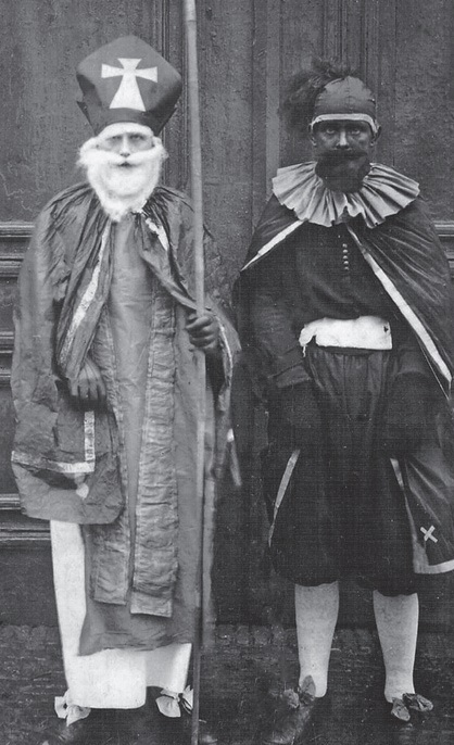 Piet en Hil Groot als Sinterklaas en zwarte Piet.
