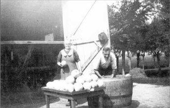1920. Piet Deken met zijn vrouw Maartje Deken-Wagenmaker aan het kaasmaken op het Noordend D59.