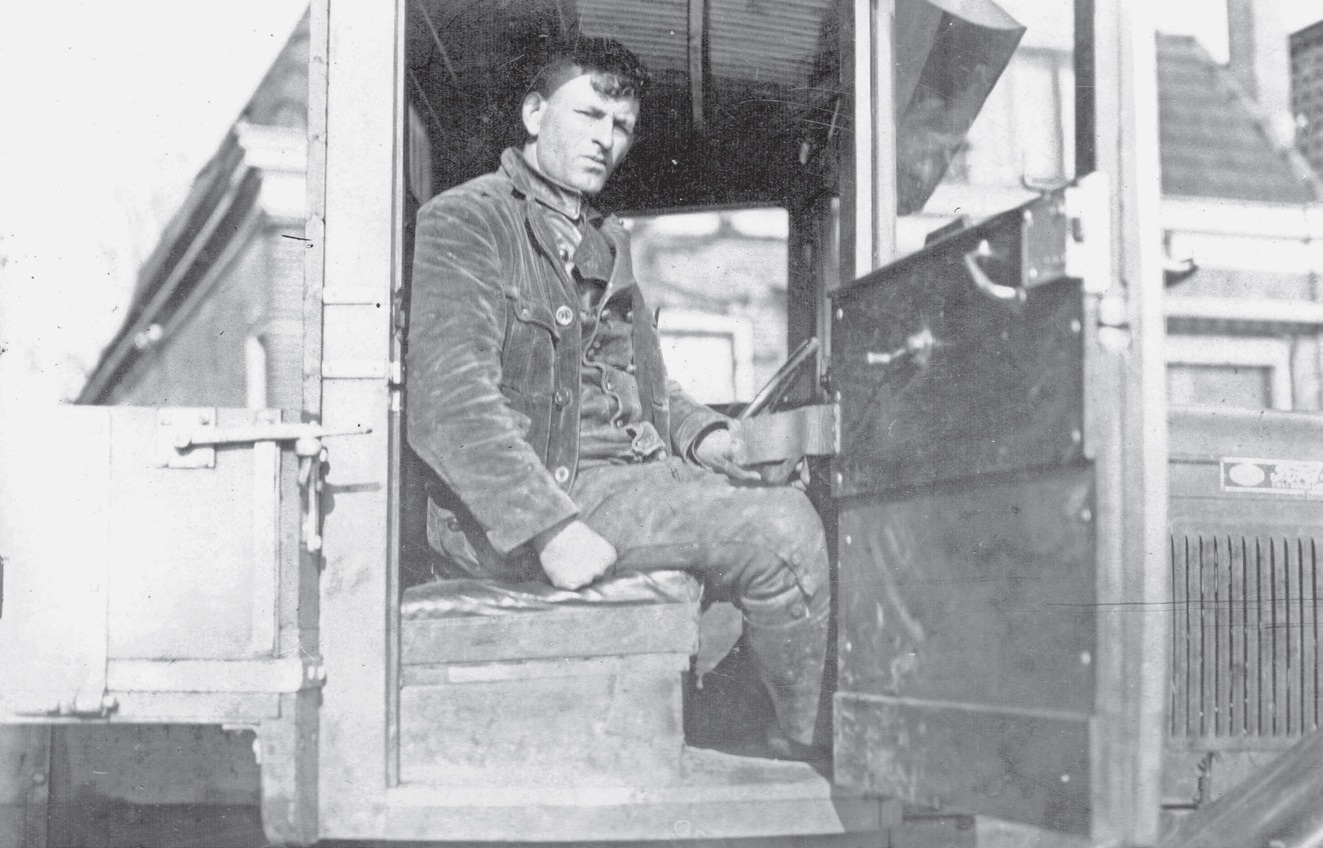 1934, Maarten Hoogland in bedrijfsauto Appel in Uithoorn.