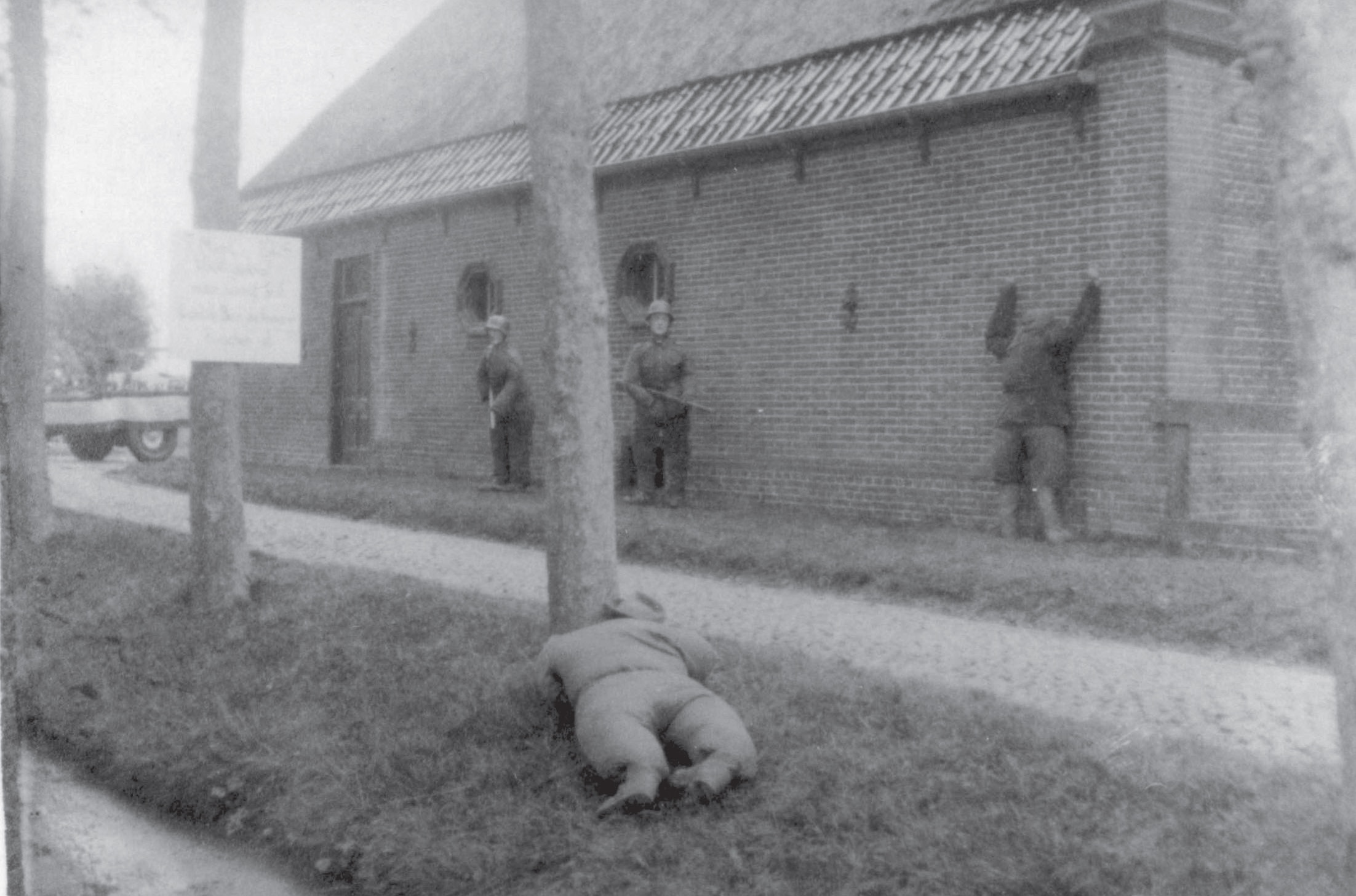 Het vervolg staat Truus nog goed voor de geest. Wim en Tinus vluchtten het weiland in richting de Gouwe, met achterlating van hun wapens. De Landwacht vroeg versterking van Duitsers die uit Alkmaar naar Hoogwoud kwamen. De landwachters doorzochten de boerderij en vonden fietsen die verstopt waren onder het hooi in de hooiberg. Een van hen ging toevallig op een stuur staan. Tegelijkertijd waren er ook Duitsers op het erf gekomen en werden de fietsen tegen het hek aan de weg gezet. Piet moest daar ook gaan staan. Op dat moment kwam een jongetje aanrennen en zei: ‘Mijn tante is dood.’ Het bleek buurvrouw Afie Breed te zijn. Het jongetje was een neef uit Amsterdam die bij Breed verbleef. Afie was achter de deur gaan schuilen en werd getroffen door een verdwaalde kogel. Een van de Duitsers zei tegen Piet: ‘Artz holen.’ Deze opdracht om een dokter te halen was zijn redding. Piet stapte op de fiets en ging richting Opmeer. Rustig aan, om geen argwaan te wekken, aldus Truus die vanuit het raam van de keuken toekeek. Piet was gekleed in een overall en steunde zijn ellebogen op het stuur en dook meteen onder in de Lage Hoek. Op het moment van de schietpartij bevonden Duw en de kinderen Kees en Hans zich in de keuken. Truus pakte nog haar klompen van de koegang, maar een van de landwachten beet haar toe om de deur dicht te doen. Ze vluchtten naar de ouders Groot die tegenover de kerk woonden. Op een avond gingen Duw, de kinderen en Truus met de brik naar het gezin Hoogland in de Weere. Het was spertijd en dus verboden om op straat te zijn. Maar het ging goed. Daar aangekomen had Hans in zijn broek gepoept. Truus moest hem schoonmaken, maar wist niet waar de kraan zat. Later hoorde Truus dat haar zus de schietpartij had gehoord. Ze diende bij Dirk Scholten aan de Koningspade die daar een tuinderij had met druivenkassen. Dirk zat ook in het verzet en kreeg regelmatig bezoek van de paters van het klooster uit Niedorp.