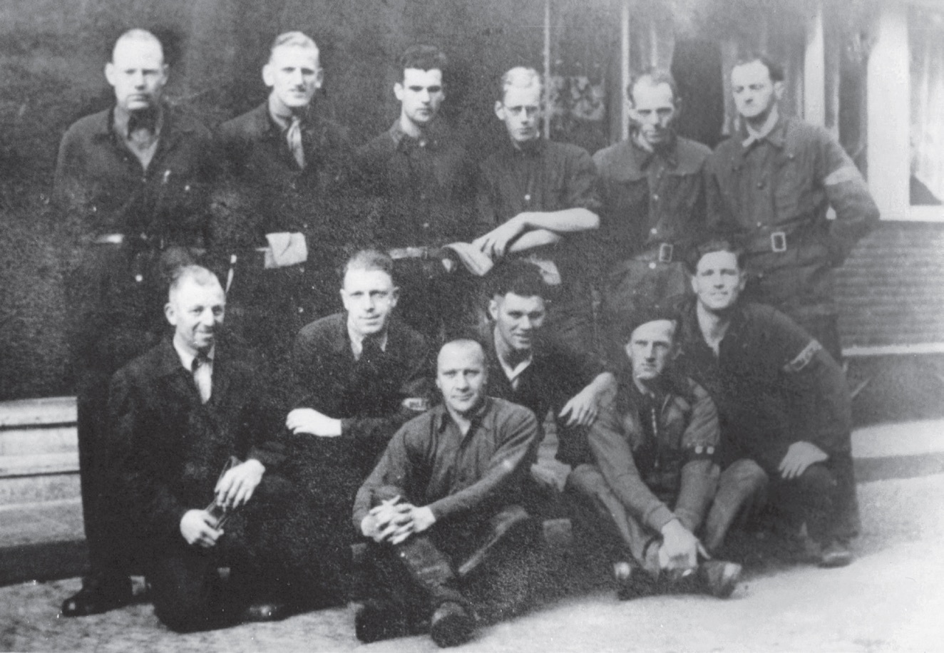 Verzetsgroep Hoogwoud-Opmeer. Vlnr boven: Puck Stam, Nic Vlemming, Daan de Jonge (Zwarte Daan), Jac Rietsema (Piet Stam), Muus Konijn en Gerard Tulp.