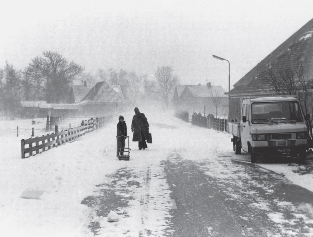 Woensdag 14 februari werd een gedenkwaardige dag die velen zich zullen herinneren. Opnieuw sneeuwstormen over het hele land, nog heviger dan in december. Auto’s en treinen liepen vast, boerderijen, zelfs dorpen, raakten geïsoleerd. Sneeuwduinen stoven hoog op tot plaatselijk wel 7 meter. In het noorden viel in veel dorpen het licht en de verwarming uit.