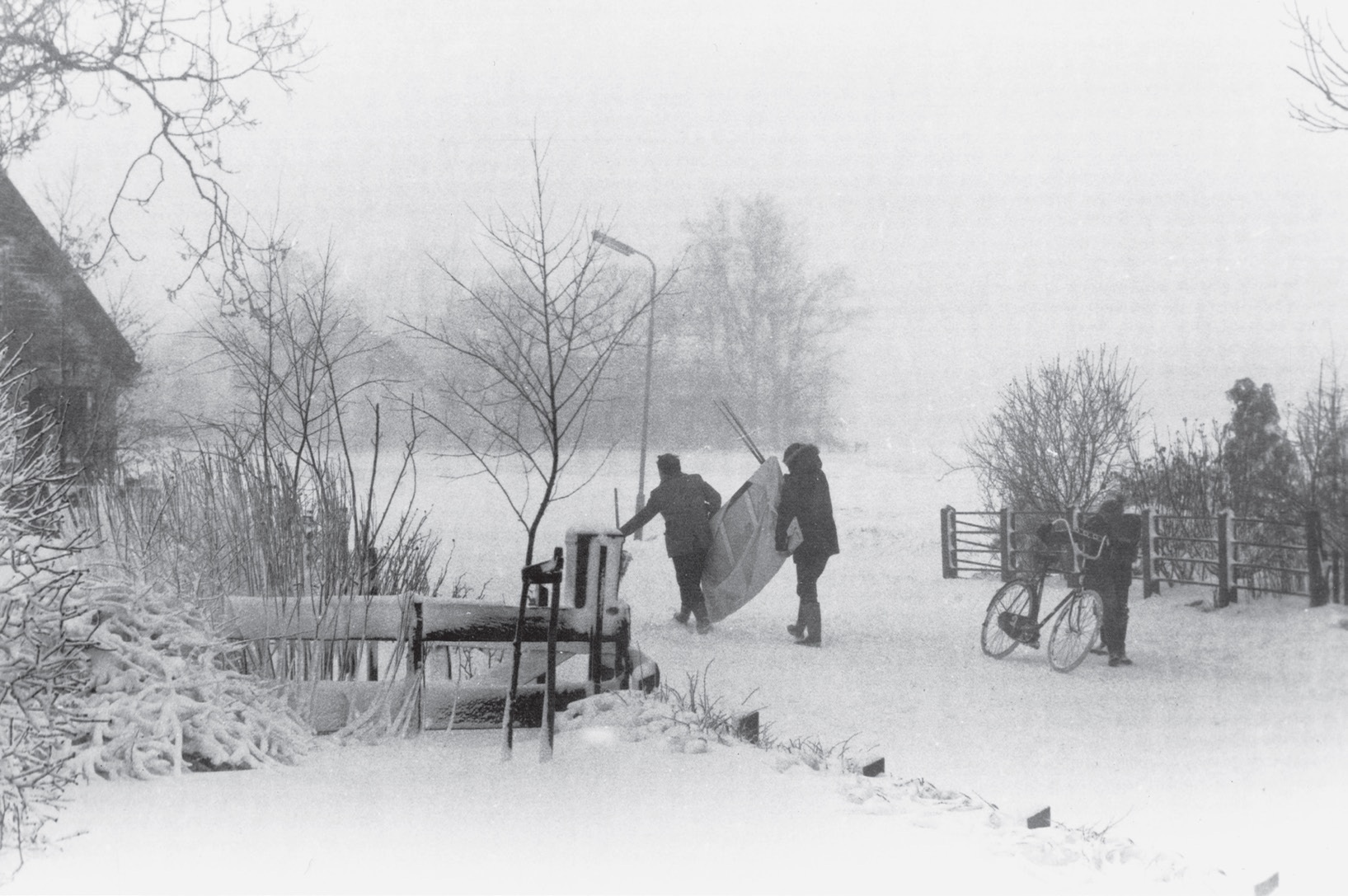 In Aartswoud konden auto’s twee dagen lang het dorp niet uit, waardoor veel inwoners niet naar hun werk konden. Van de nood werd een deugd gemaakt, buren zochten elkaar op om te kaarten of (zie foto) om op een van zolder gehaald tafelbiljart tegen elkaar te spelen.