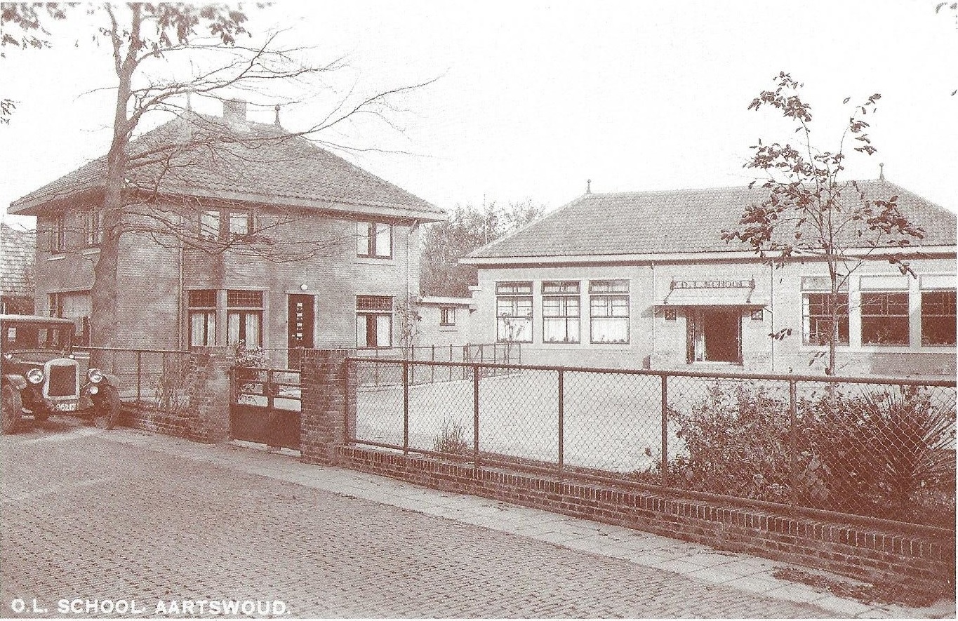 Op deze foto uit 1932 zien we de derde Openbare Lagere School van Aartswoud kort na de oplevering.