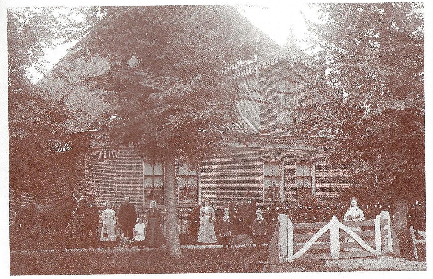 Op deze foto uit ongeveer 1914 wordt zij bewoond door de fam. Jacob de Jong en Maria van Diepen. Deze unieke stolpboerderij is gebouwd in 1786. De boerderij heeft een bijzondere ronde hoek met een blind raam in de voorgevel, een schitterend versierde dakgoot en een statige dakkapel. Voor 1896 bevonden de darsdeuren zich links in de voorgevel. Op deze foto v.l.n.r. Piet, naast het paard Jan, Geertje, eigenaar Jacob de Jong, Marie, mevr. Maria de Jong – van Diepen, Anna, Dorus, Arie, Cor en Alie.